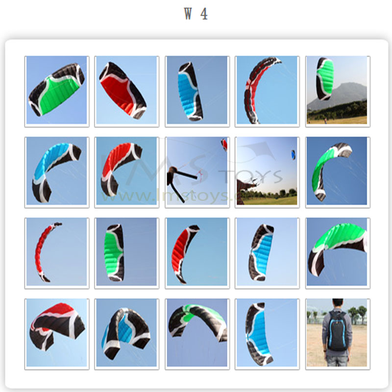W4 second generation of a comprehensive upgrade, based on the original kite sensitivity increased, tension increase and enhance the speed, that is suitable for beginners line traction kite practice,1-2.5 wind control how four lines takeoff, landing, steering and safety releaseother actions;, 2.5-4.5 wind exercises along with the functionality of the professional type of traction kite vacated, pull carts and dragged action. Head line figures indicate that more accurately distinguish between upper and lower right-hand man. Mainly described as follows: